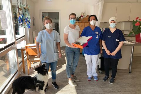 Wir haben für unsere Crew-Mitglieder Donuts auf der Arbeit verteilt.